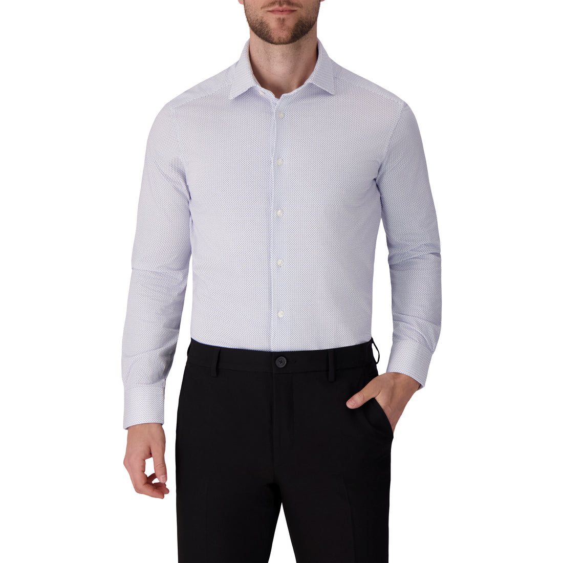Your Everyday Office Go-To This long sleeve white dress shirt features a refined geometric microprint...
