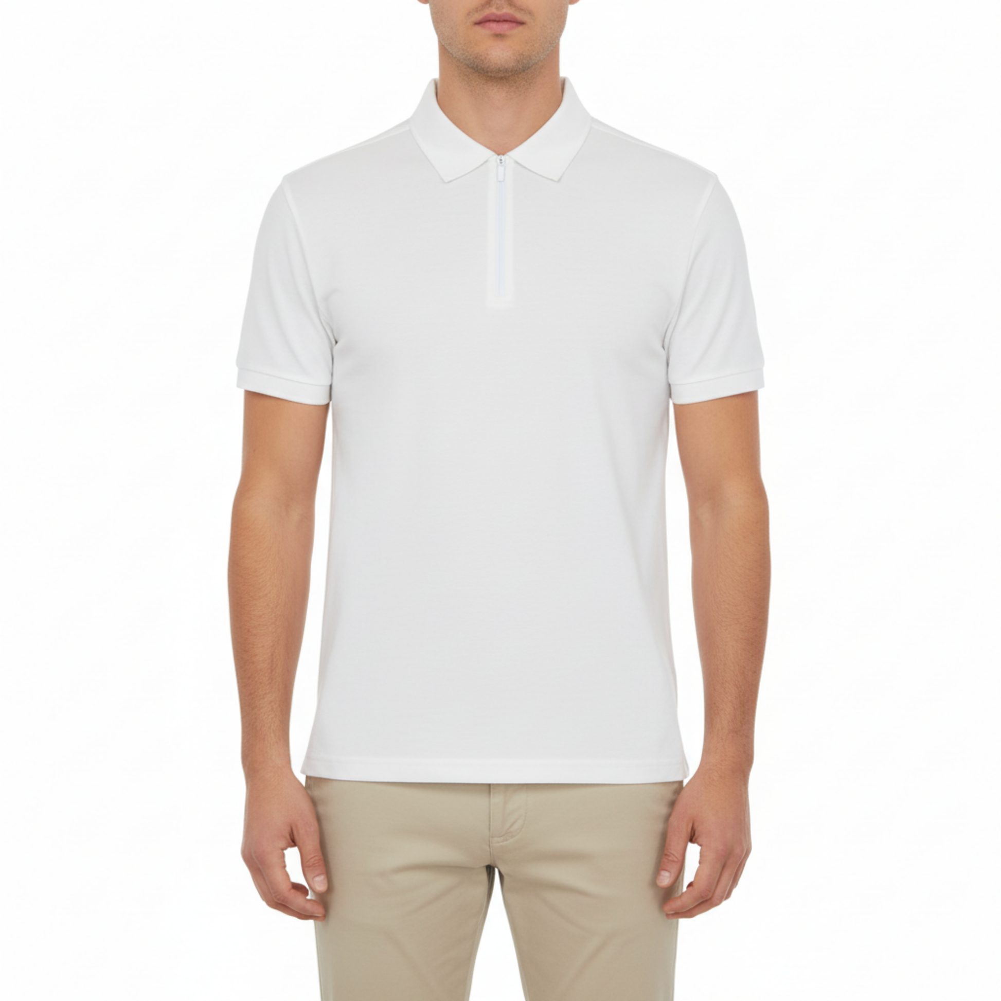 Men’s Pima Cotton Knit Polo with Zip – Short Sleeve Classic Fit