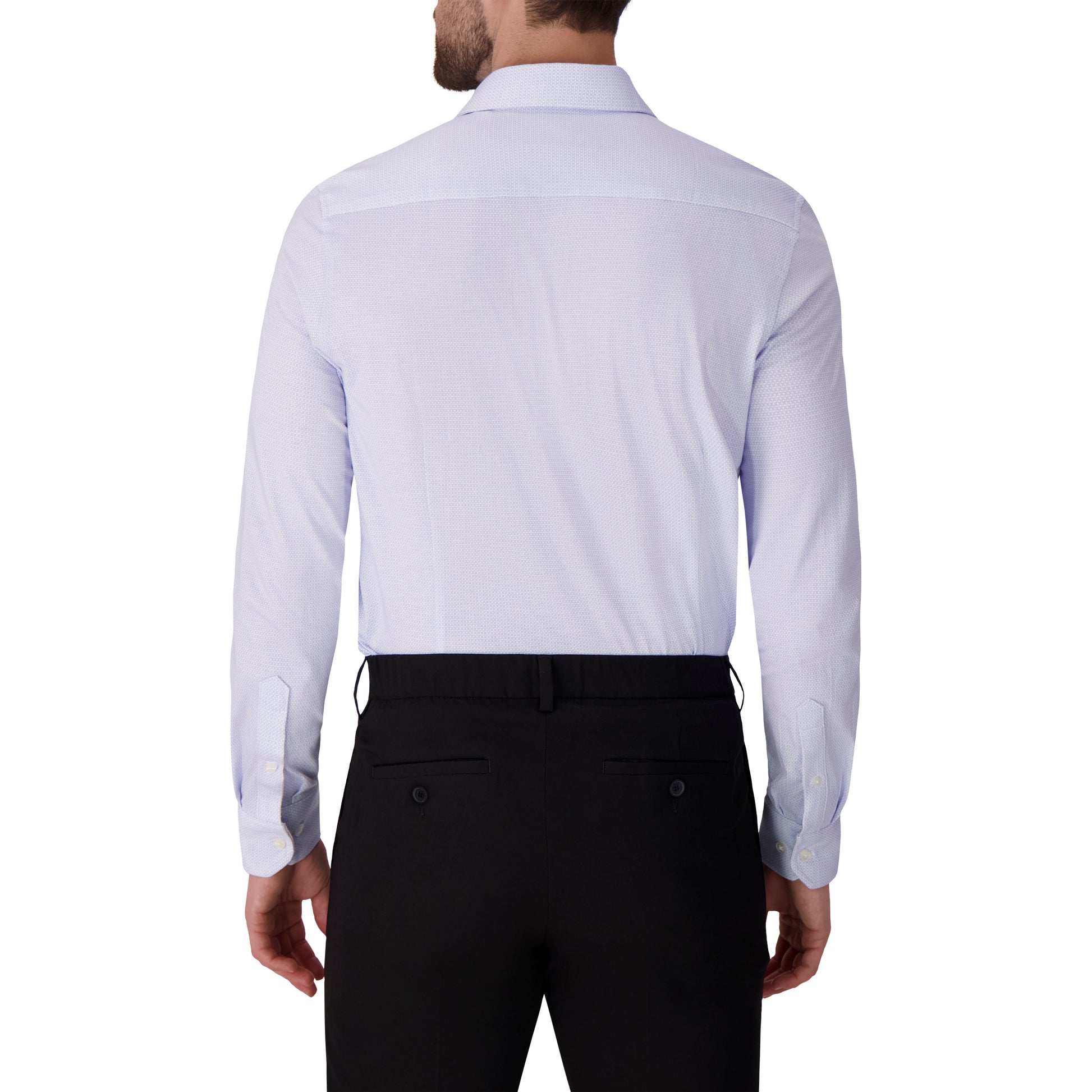 Crafted from premium 100% cotton, this long-sleeve dress shirt offers a contemporary twist on classic menswear with its subtle geometric print. The soft knit fabric provides all-day comfort, breathability, and ease of movement, making it the perfect shirt for both office and occasion wear. Featuring a refined semi-spread collar and tailored fit, it delivers a polished look while keeping you relaxed. Pair it with chinos or suiting trousers for an effortlessly smart ensemble.